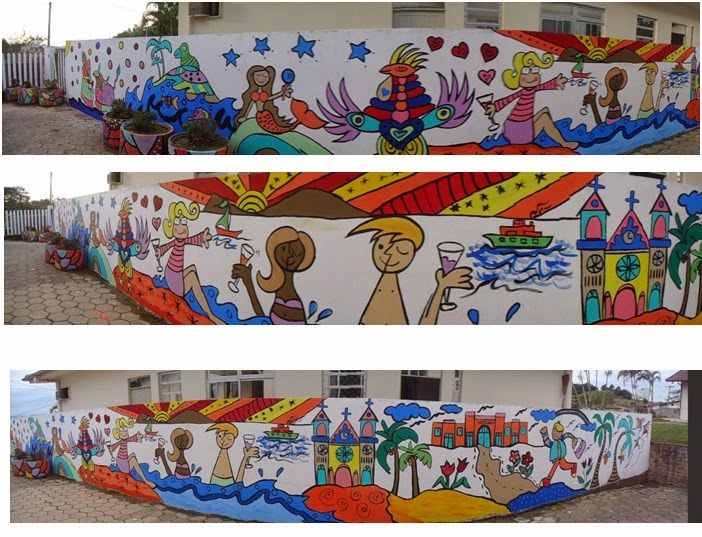 lateral da escola. Os alunos utilizaram o primeiro desenho realizado em folha